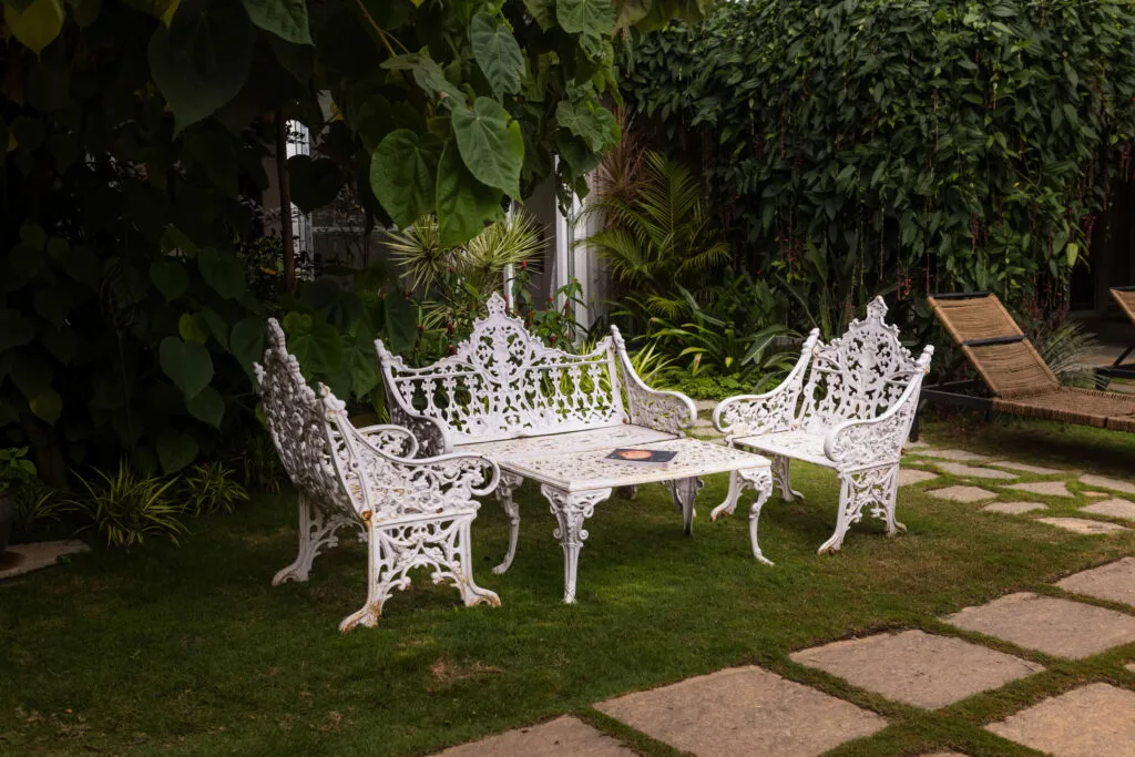No. We do not allow food inside rooms, and we do not offer room service. Guests are encouraged to dine in our designated spaces — we have 3–4 beautiful locations across the property. Starters are served as moving platters, hand-delivered while you relax in the gardens.