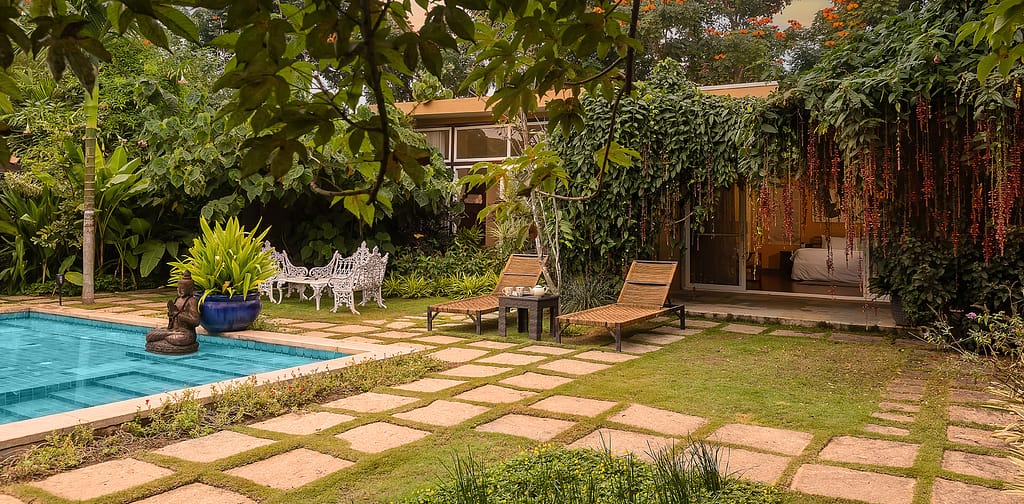 The pool at Orchid Tree offers a serene spot to relax, surrounded by lush greenery and peaceful nature. It’s the perfect place to unwind and refresh your body and mind in calm waters.