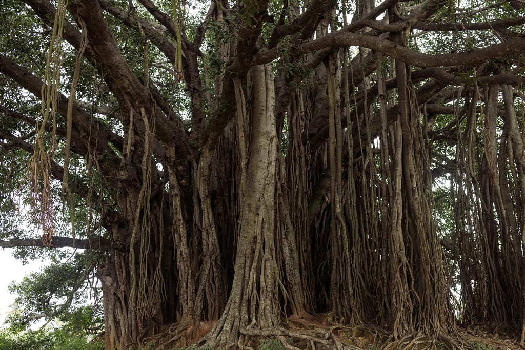 The banyan tree is a majestic symbol of strength and wisdom, known for its vast canopy and aerial roots that create new trunks, providing shelter and supporting diverse wildlife. It represents resilience and timeless natural beauty.