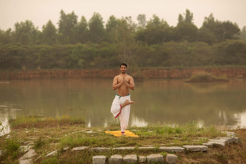 Classes by the lake are led by our guru, Shyamala Kuppaswamy, whose decades of teaching bring depth and grace to every session. Practicing here, with rippling water and open skies, is a rare gift.